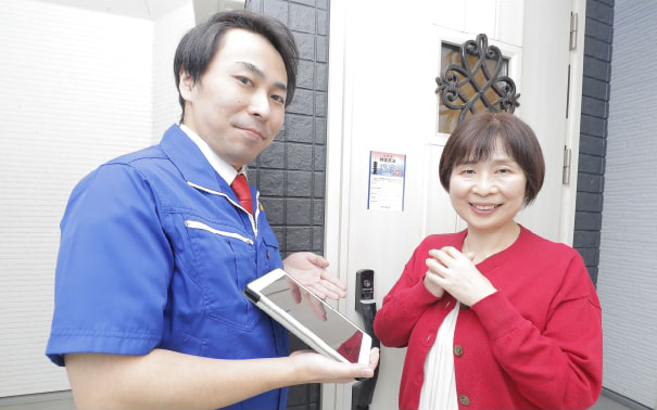 認定錠前技師が現場に到着し、現状を確認してお見積りを出します。金額にご納得いただけましたら、作業を開始致します。